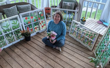 Amy has been a lifelong artist, from drawing on walls as a child, to obtaining a degree in Fine Art. Amy draws her inspiration from bucolic rural scenes of the Virginia countryside. Rustic barns, rolling landscapes and bright garden florals are often themes found in her work. Amy's artwork includes "recycled art". Salvaging her classroom sample art into small colorful scraps, she recreates and give new life to her otherwise discarded works. Using canvas, ribbon and fabrics, then sewing in decorative stitches, Amy creates truly unique and one of a kind artwork. Amy has lived in the Warrenton area for over 20 years with her husband Andy, daughter Anna and a small flock of rowdy chickens. Painting is definitely Amy’s passion! Amy is a published illustrator, as well as an award winning local art instructor, for Fauquier county. See Amy's other website for live classes at www.creativecrafts.space.